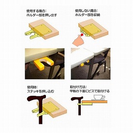 ・既存のテーブルに杖掛け機能を。後付けタイプのステッキホルダー。